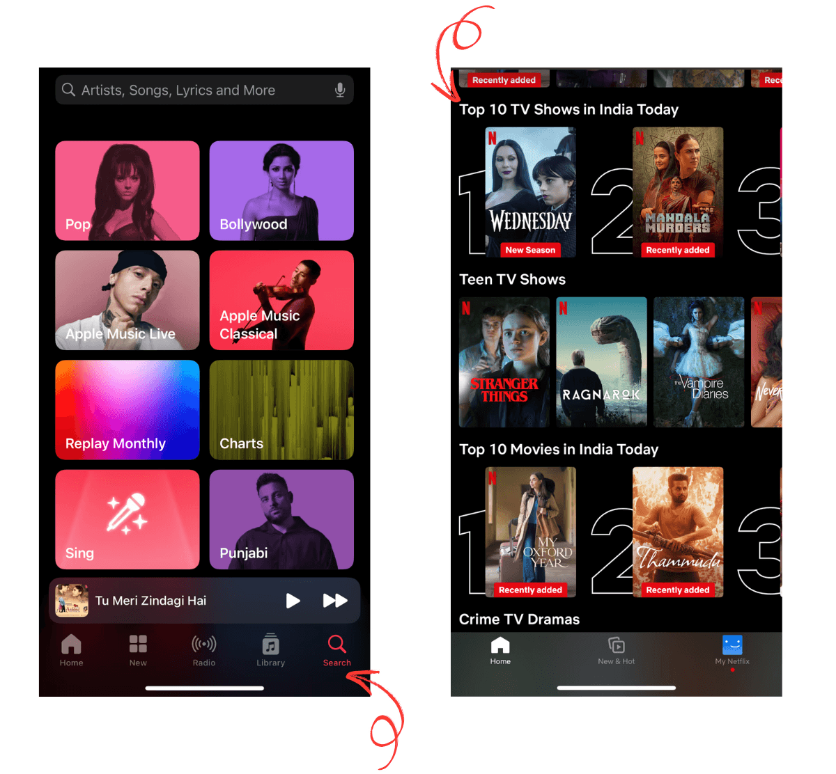 Users make faster decisions when faced with fewer options. For example, Apple Music streamlines navigation with a minimal number of tabs, while Netflix promotes trending content upfront to help users choose without overthinking.
