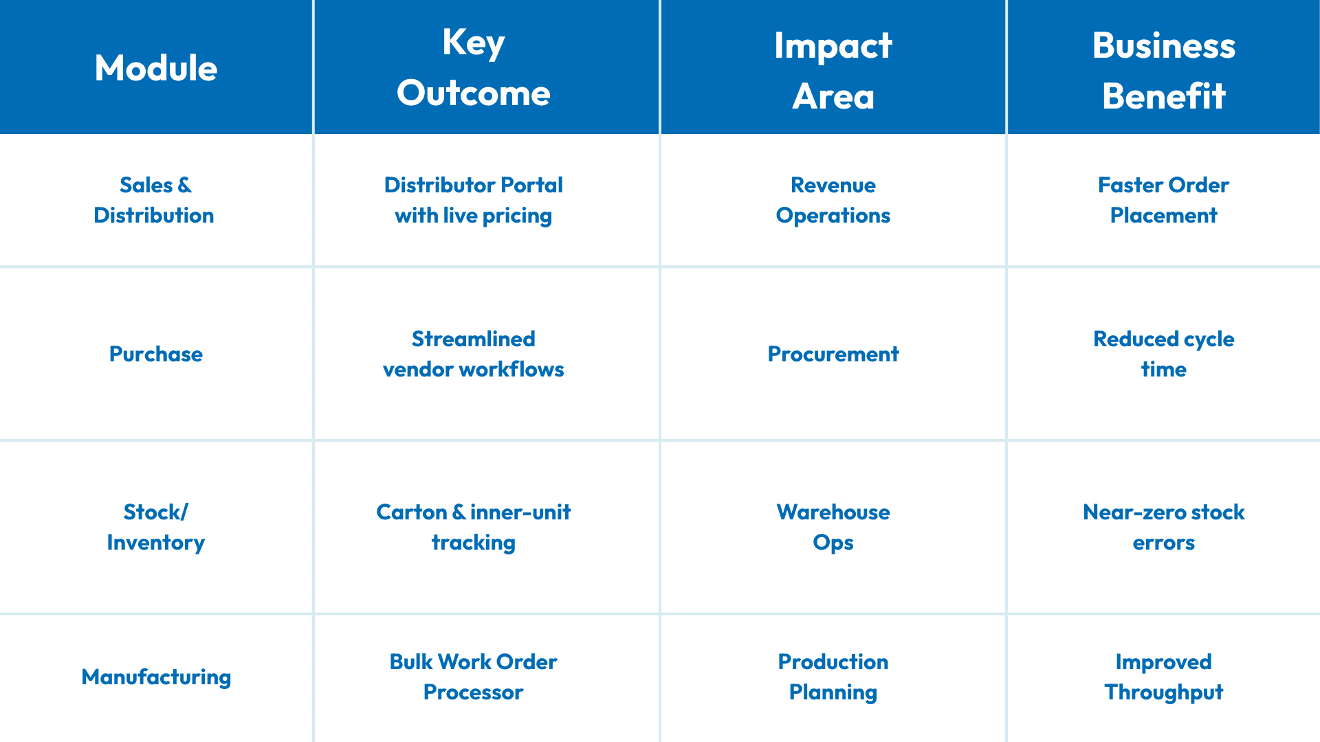The result was a scalable, customised ERP built on ERPNext that reduced order processing time, eliminated manual errors in inventory tracking, accelerated manufacturing planning, and empowered the distributor network with self-service capabilities. This case study documents the journey, challenges, and measurable outcomes of this ERPNext implementation.
